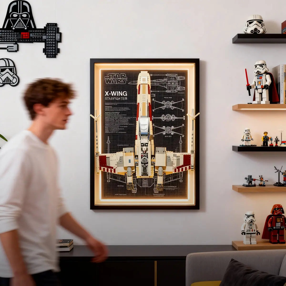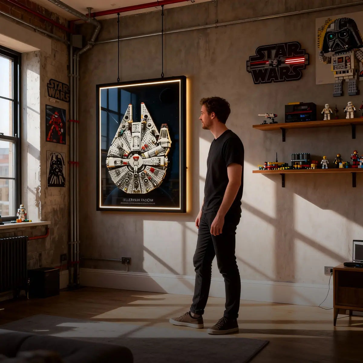 Show your LEGO collection with mounted wall frames that fit different spaces and styles. Whether in a modern living room, cyberpunk game room, or industrial hobby room, these displays add personality and showcase your passion clearly and sharply.