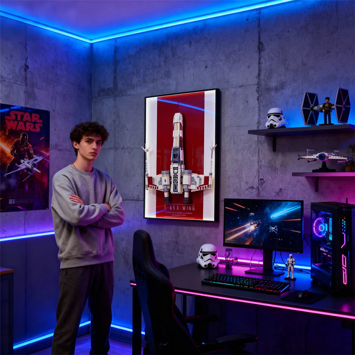 Show your LEGO collection with mounted wall frames that fit different spaces and styles. Whether in a modern living room, cyberpunk game room, or industrial hobby room, these displays add personality and showcase your passion clearly and sharply.